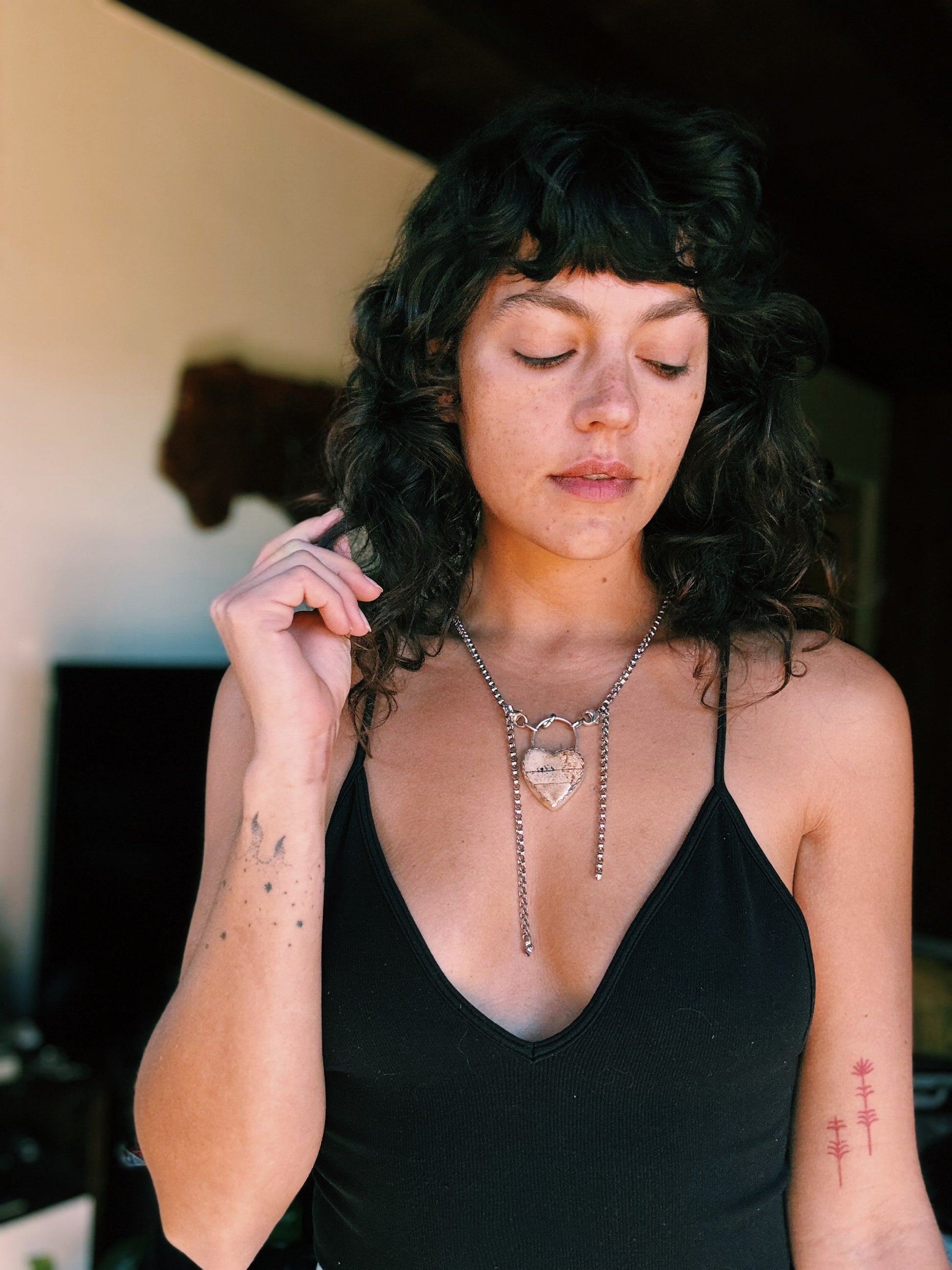 Handcrafted using natural sandstone with a beautiful picture looking like birds on a wire, this heart pendant necklace is a unique take on a heart locket. The stainless steel chain adds durability, along with sterling silver materials making it perfect for everyday wear or special occasions. Add a unique piece to your collection with this beautiful and timeless, handcrafted piece.