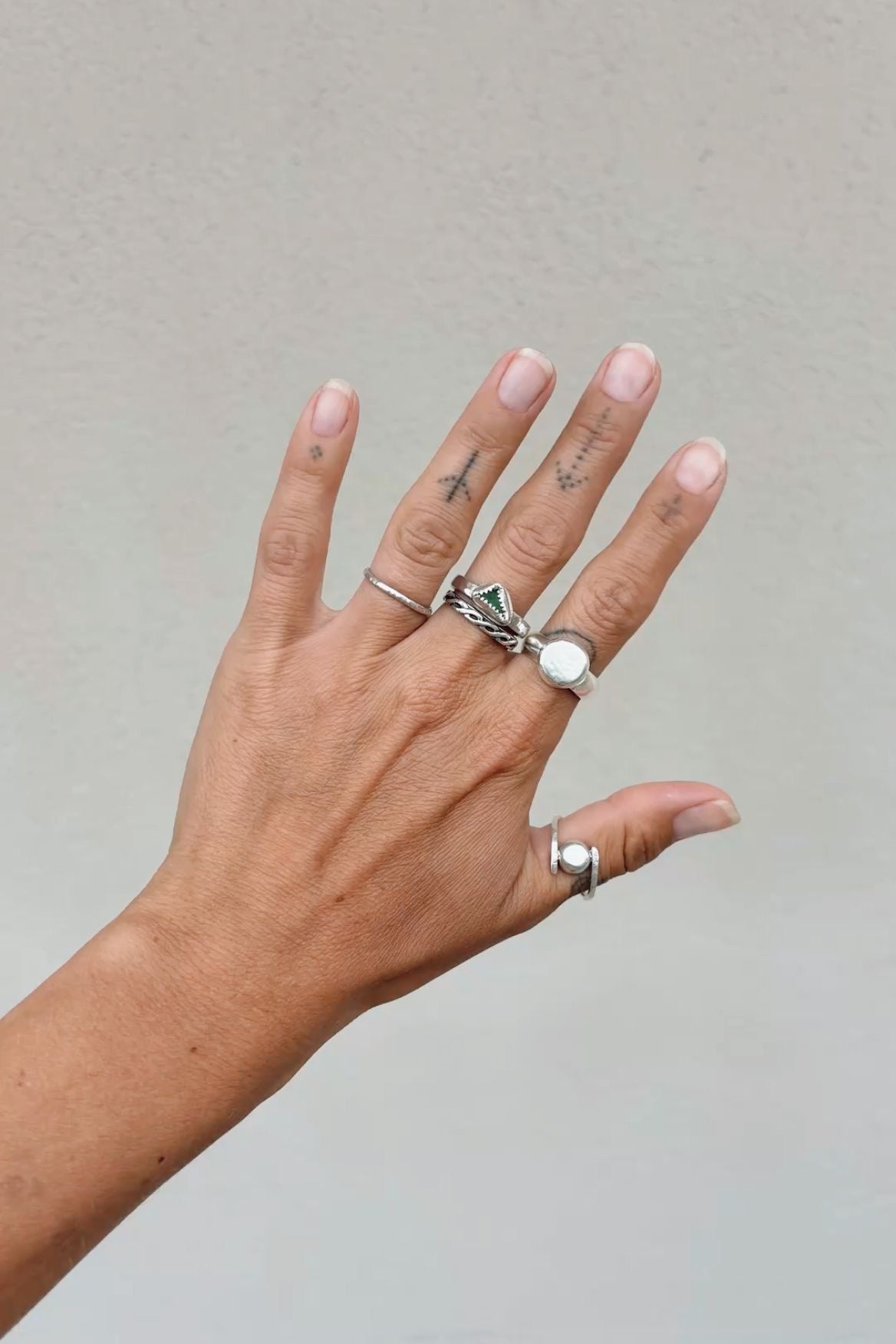 Crafted from solid .925 sterling silver and made to order in any size, each ring has its own unique shape and subtle shineโjust like the pebbles you pocket on a hike, not because they're perfect, but because they called to you.