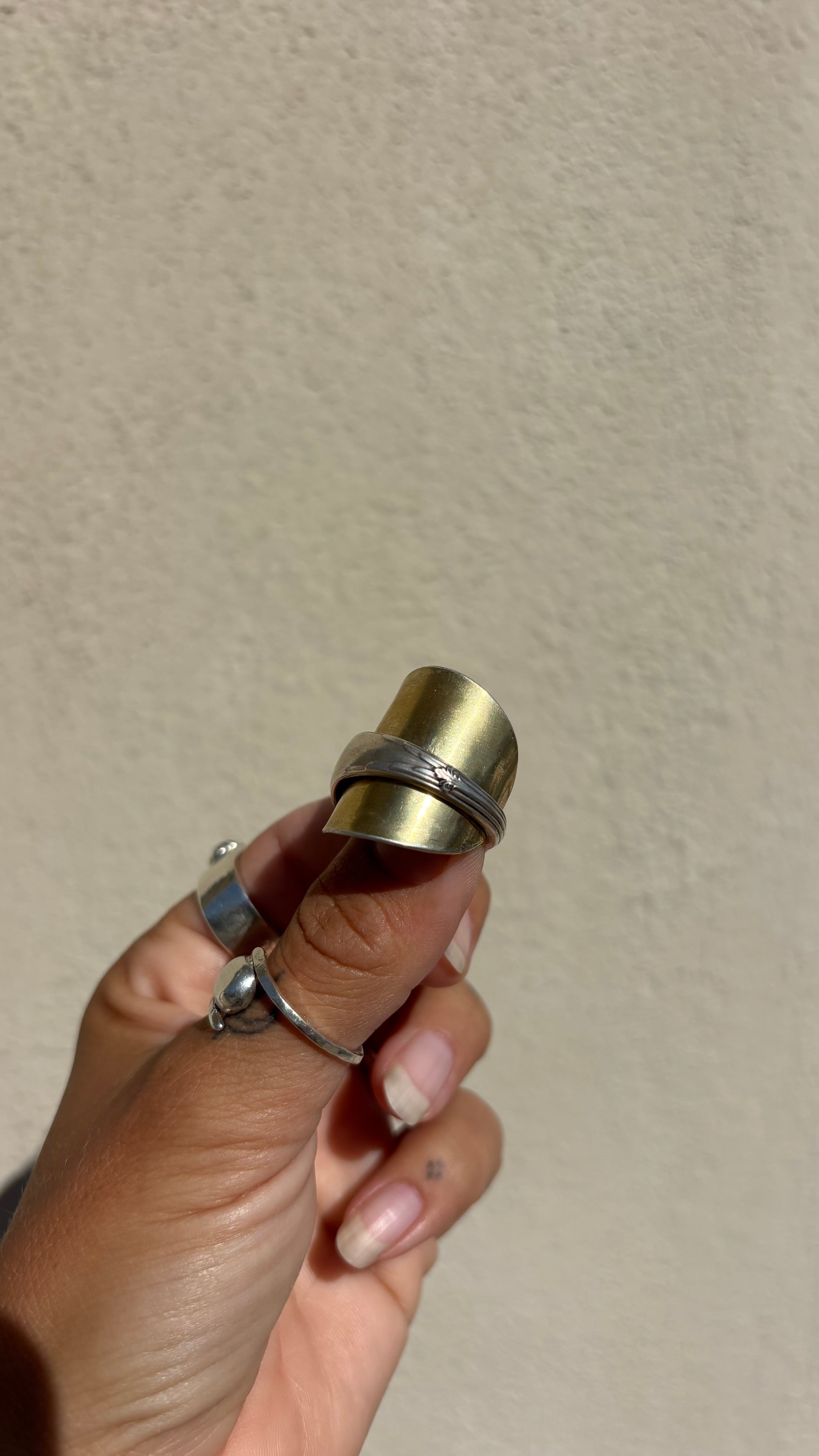 Uniquely crafted from recycled silver and brass, these handmade vintage spoon rings are a one-of-a-kind pieces. With an artisan touch and eclectic charm, they add a unique touch to any outfit. Each ring is approximately a size 7.5, ensuring a perfect fit for most. Sustainable, stylish, and timeless.